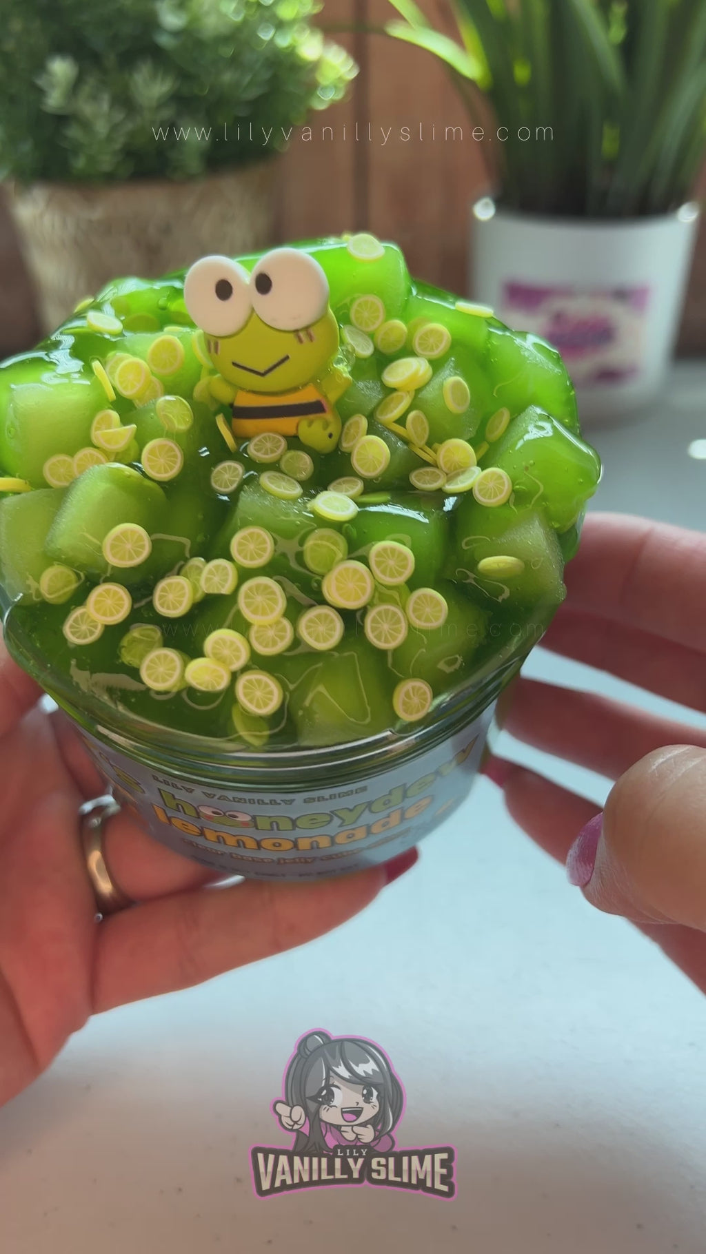 Our Keroppi’s Honeydew Lemonade Slime is scented as its name. The scent is so delicious!